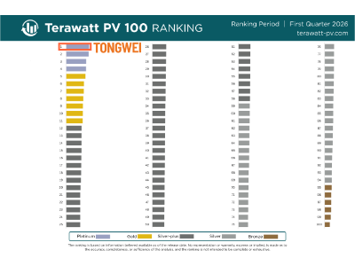 Tongwei Ranks Number One in Terawatt PV 100 Global Solar Manufacturing Ranking